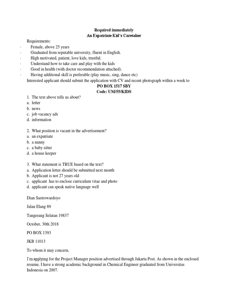 Need Help Writing An Essay Contoh Application Letter Magang Bahasa Inggris 2017 10 10